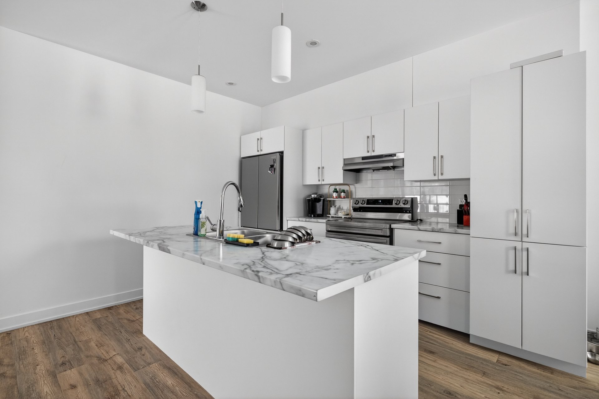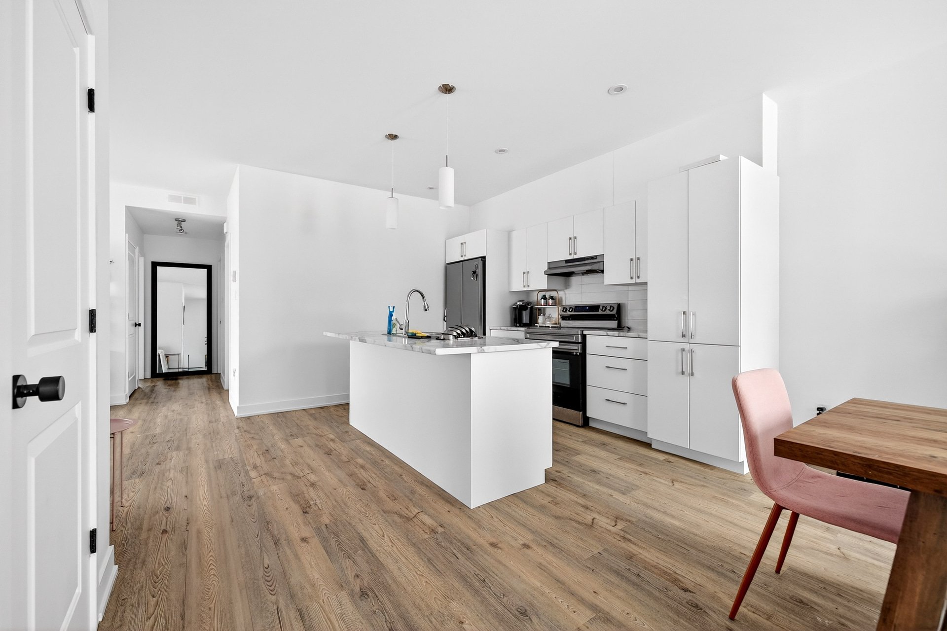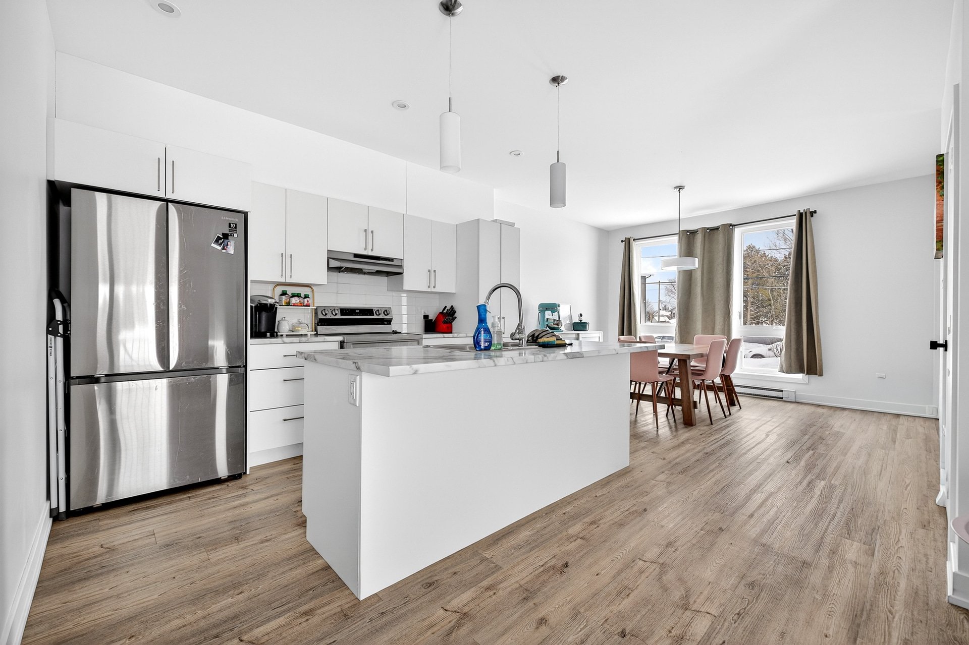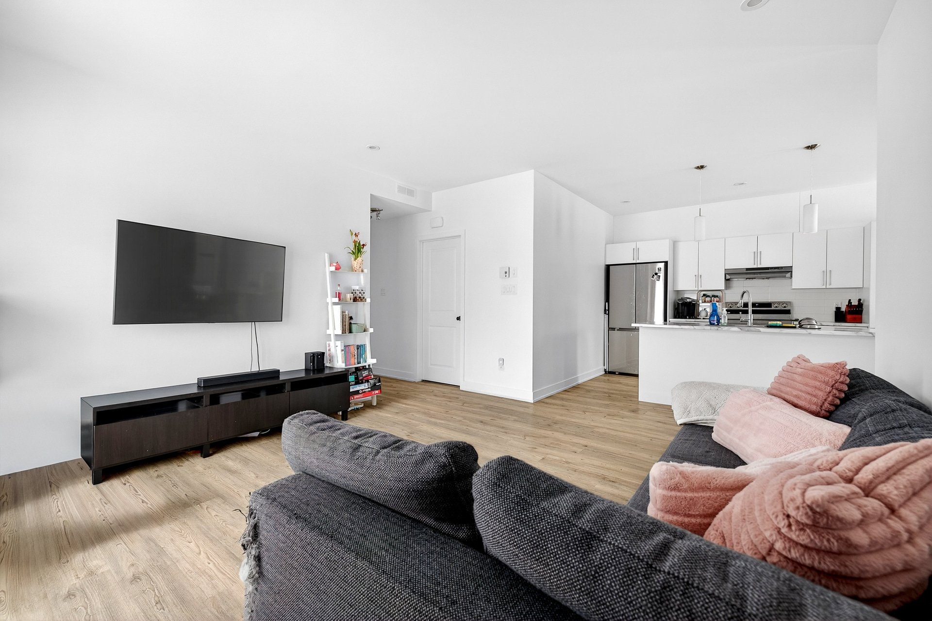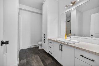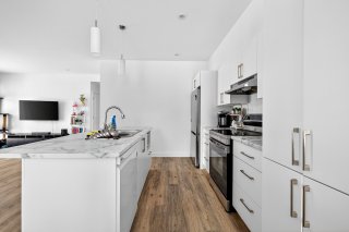 Cette unité se distingue par sa configuration à aire ouverte, ses grandes fenêtres laissant entrer une abondante lumière naturelle, ainsi que par la présence d'un walk-in dans la chambre principale, un détail recherché qui ajoute confort et fonctionnalité au quotidien.
